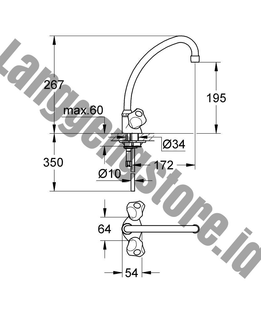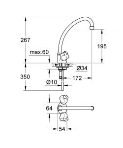 ATLANTA TWO-HANDLE SINK MIXER by Rino Grohe #SKU. 31764000 Product description : ATLANTA TWO-HANDLE SINK MIXER Treflor-handles Longlife-headparts GROHE StarLight chrome finish swivelling tubular spout mousseur smooth body Dimensional Drawing Product Range