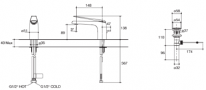 • Flexible G1/2″ supply hoses for easy installation