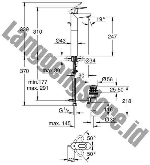 BauLoop Single-lever basin mixer by Rino Grohe #SKU. 32856000 Product description : BauLoop Single-lever basin mixer for free standing basins metal lever GROHE StarLight chrome finish mousseur pop-up waste set 1 1/4″ flexible connection hoses rapid-installation-system Colour Chrome Dimensional Drawing Product Range