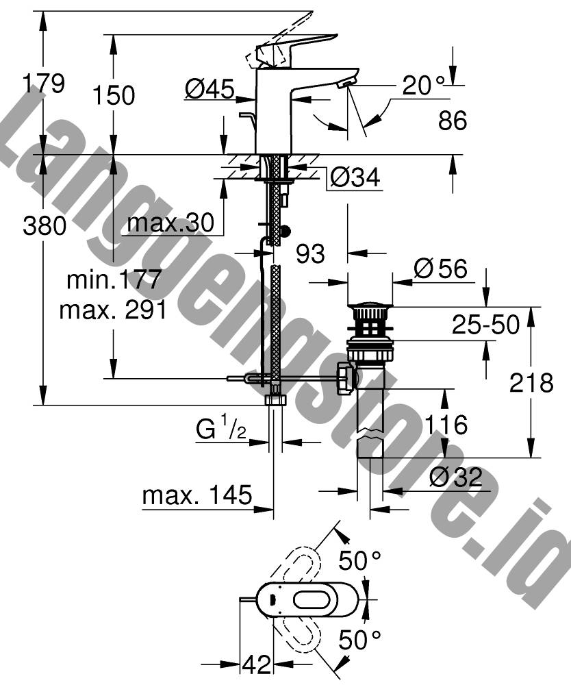 BauLoop Single-lever basin mixer by Rino Grohe #SKU. 32814000 Product description : BauLoop Single-lever basin mixer single hole installation metal lever GROHE StarLight chrome finish mousseur pop-up waste set 1 1/4″ flexible connection hoses rapid-installation-system Colour Chrome Dimensional Drawing Product Range
