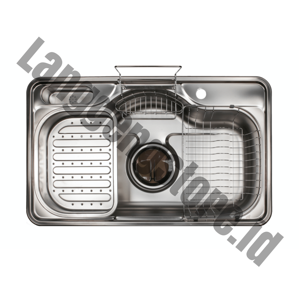 #SKU. BERGAMO About us CGS Bergamo is a kitchen sink (sink) made in Korea with stainless steel 304 and contains 18% chrome / 8% nickel. This kitchen sink has a brushed stainless steel finish on its surface which makes it look elegant. Spec Sink size: 850 x 510 x 208 mm Sink hole size: 820 x 480 mm Hole depth: 20.8 cm 304 stainless steel with 18% chrome and 8% nickel content Stainless steel brush finishing Intelligent drain Anti bacteria Free wire basket and wire pocket Made in Korea Dimensional Drawing Product Range