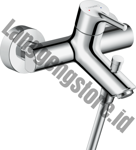 #SKU. 72400000 Product description : Talis S Single lever bath mixer for exposed projection 166 mm connection type : S-shaped connections centre distance : 150 +- 12 mm normal spray flow rate for bath spout at 3 bar : 20L/min flow rate for handshower at 3 bar : 14L/min ceramic catridge temperature limitation adjustable with automatic resetting non return valve suitable for continuous flow water heater Dimensional Drawing Product Range