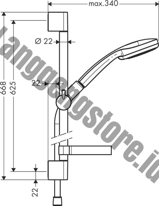 - consists of: hand shower, shower bar, shower hose, slider, soap dish