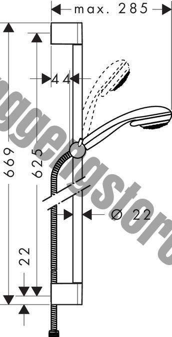 - consists of: hand shower, shower bar, shower hose, slider
