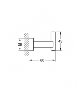 ESSENTIALS CUBE ROBE HOOK by Rino Grohe #SKU. 40511001 Product description : ESSENTIALS CUBE ROBE HOOK • material: metal • concealed fastening • GROHE StarLight chrome finish Dimensional Drawing Product Range