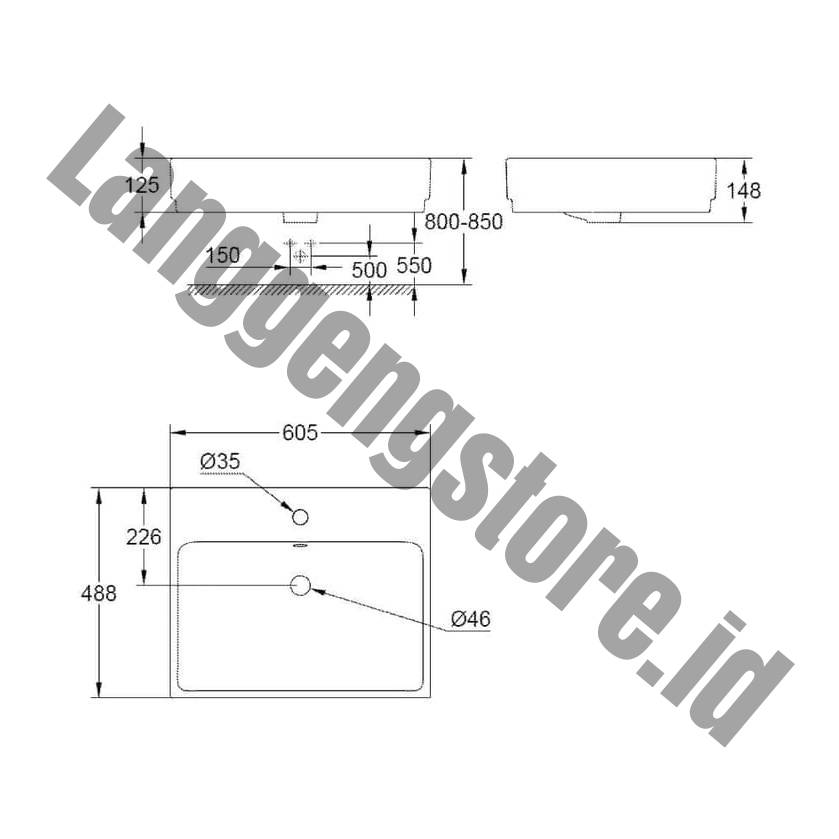 Eurocube countertop Basin by Rino Grohe #SKU. 39234000 Product description : Eurocube countertop Basin (600MM) with overflow 1 hole punched 605 x 480 mm height 151 mm sanitary ware alpine white HyperClean Proguard Dimensional Drawing Product Range