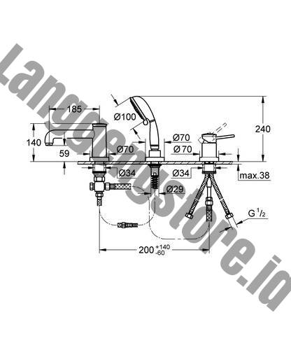 GROHE BauClassic 3-hole bath/shower combination by Rino Grohe #SKU. 25118000 Product description : GROHE BauClassic 3-hole bath/shower combination consists of: 46 mm ceramic cartridge metal lever bath spout with manual diverter bath/shower metal shower hose flexible connection hoses Protected against backflow chrome finish Dimensional Drawing Product Range