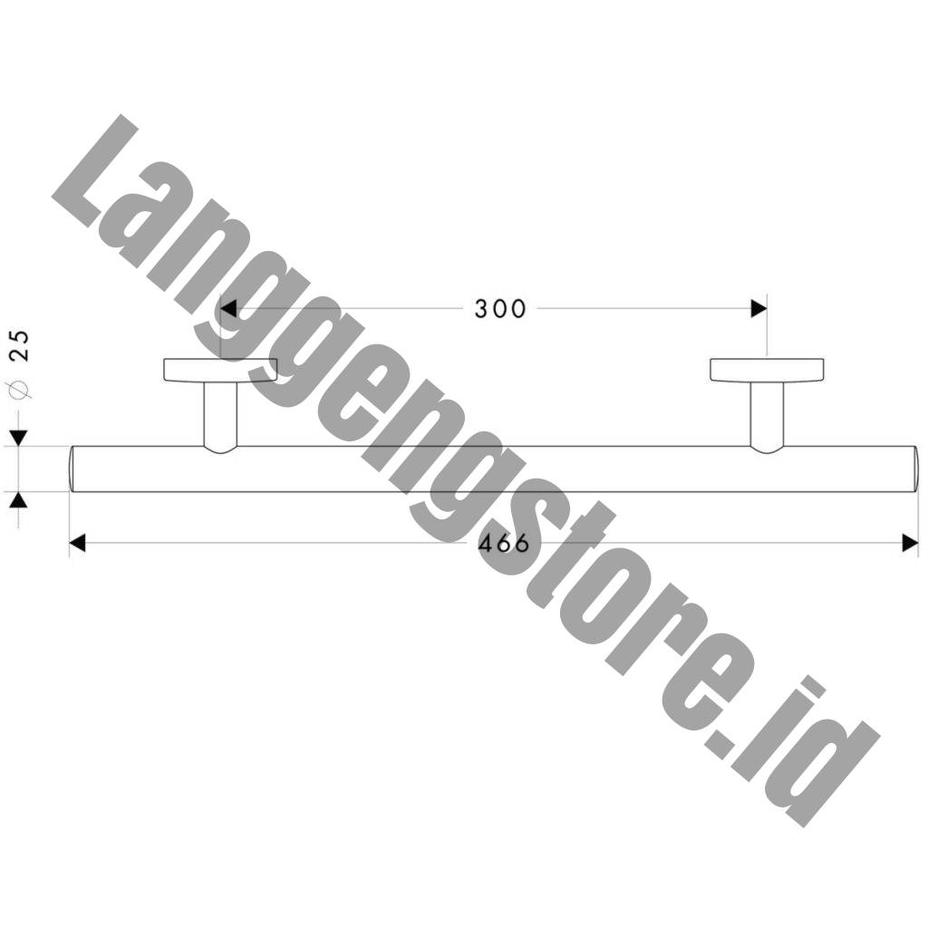 Logis Grab bar by Rino Hansgrohe #SKU. 40513000 Product description : Logis Grab bar drilling distance 300 mm material: brass wall-mounted material holder: metal length 466 mm TÜV certified Dimensional Drawing Product Range