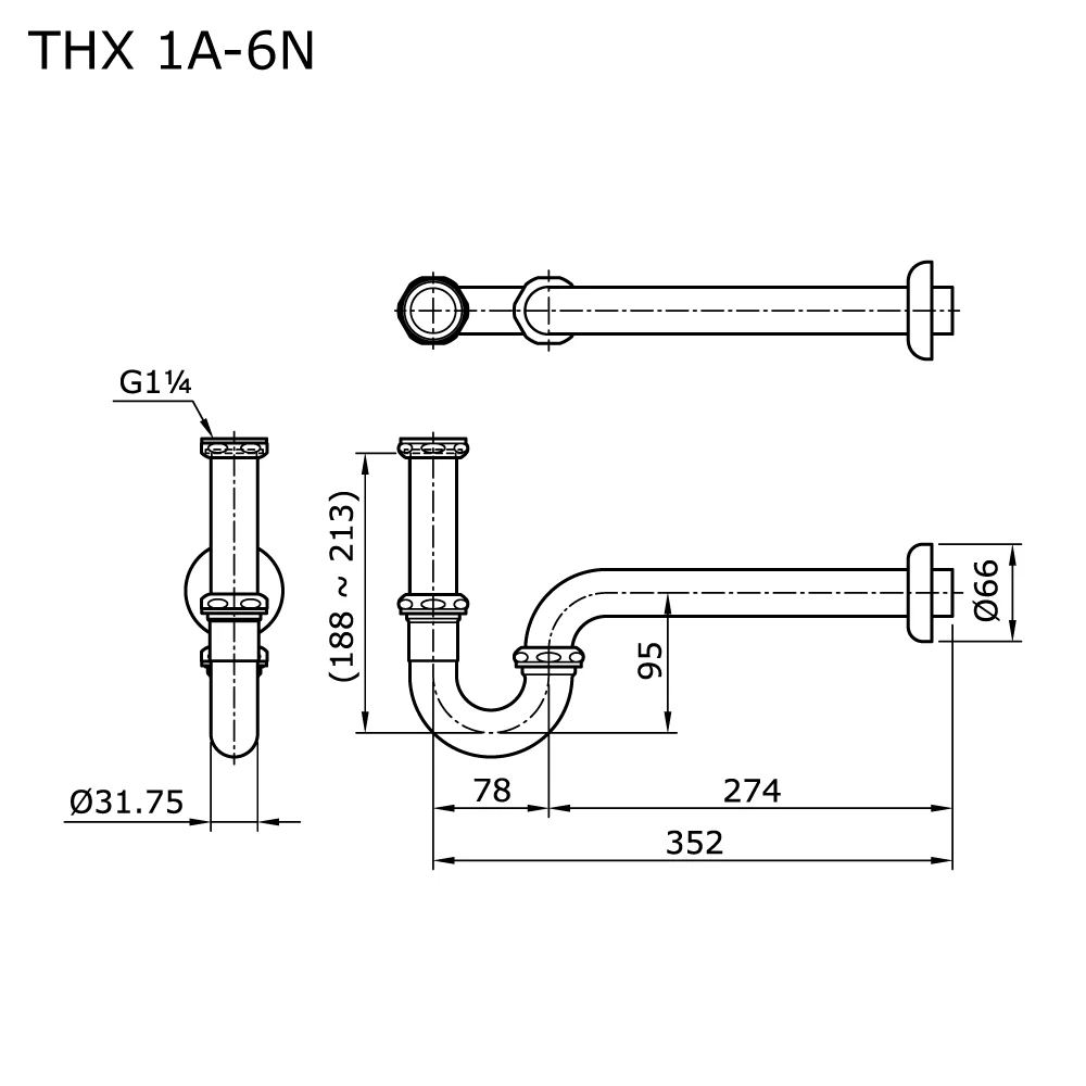 TOTO THX1A-6N P-Trap For Lavatory for 1 ÂĽ” Pop Up Waste Lavatory Faucet