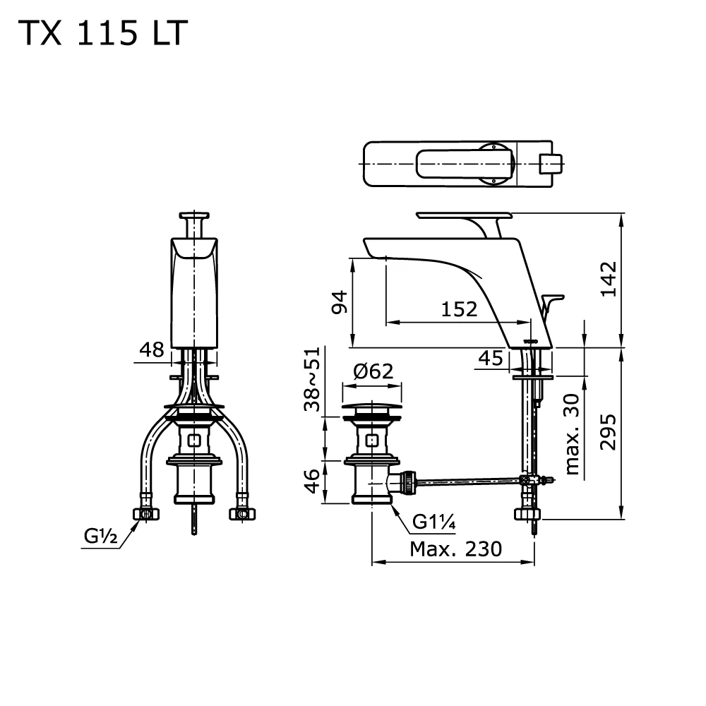TOTO TX115LT Toja Single Lever Lavatory Faucet With 1 ÂĽ” Pop-Up Waste