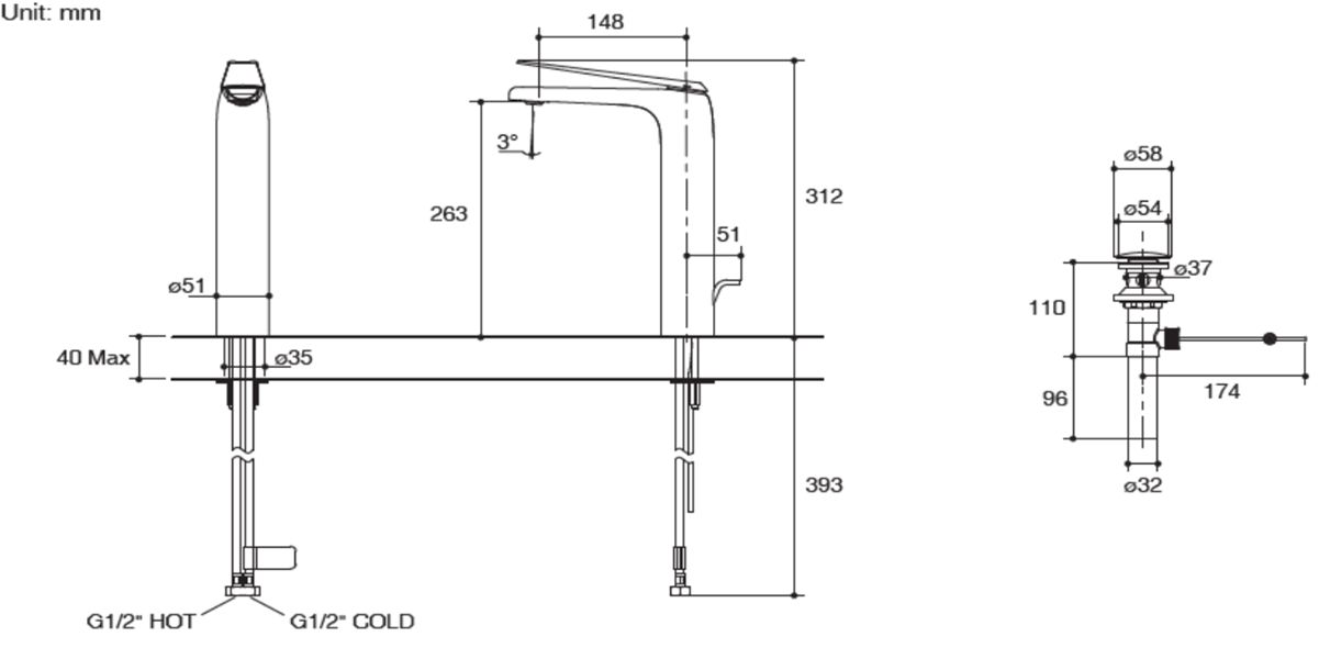 • 148 mm spout reach
