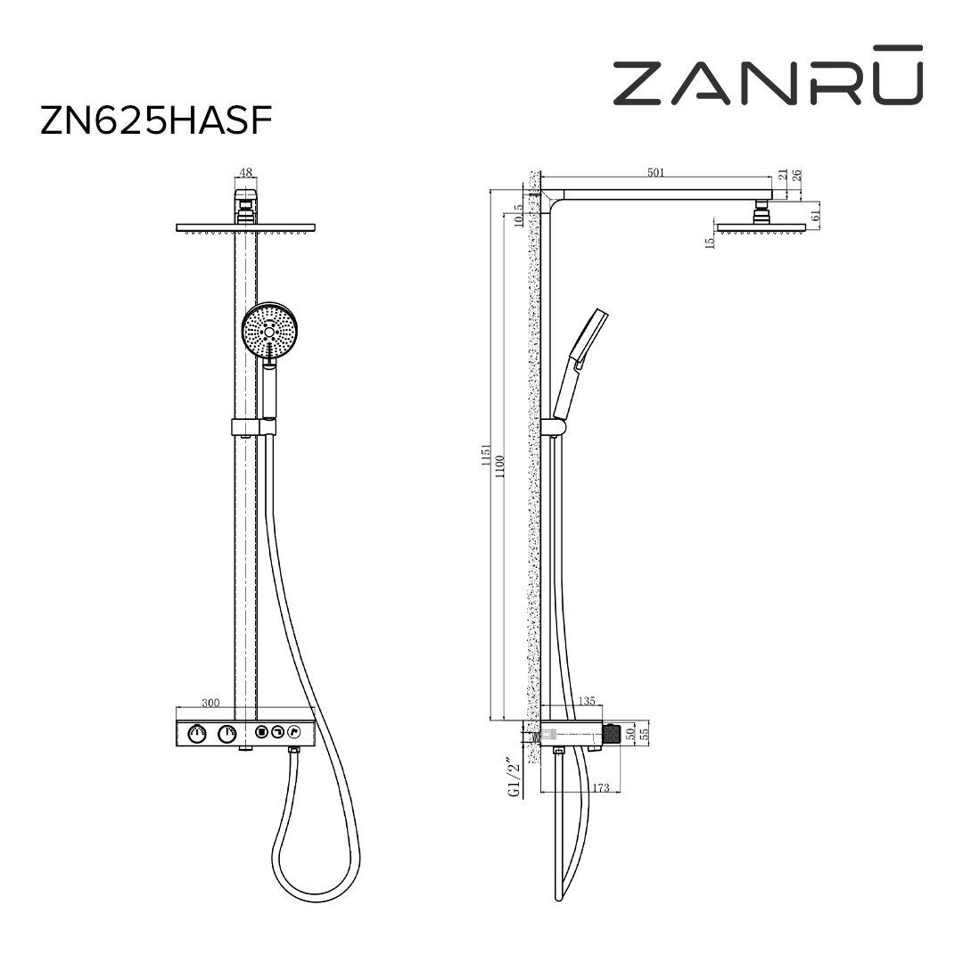 Shower Spray Head w/ Flexible Hose (White)