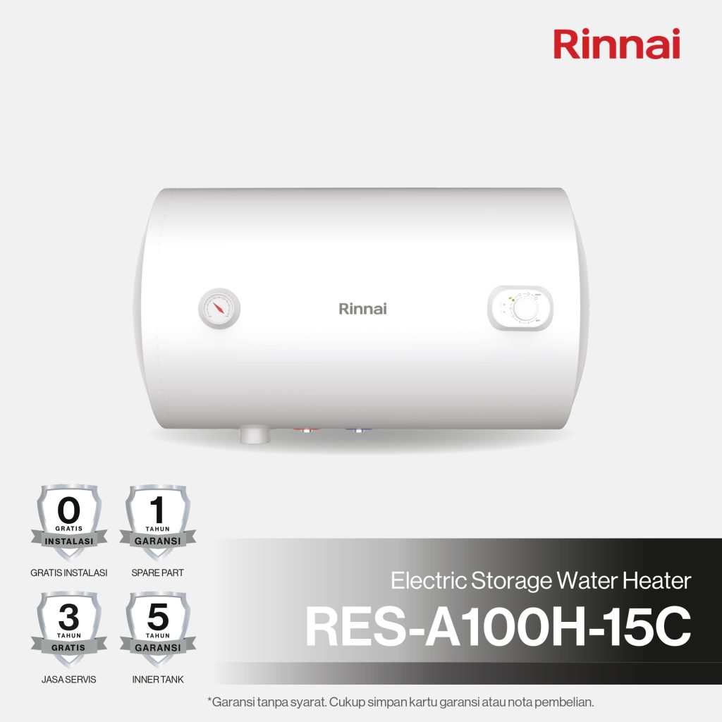 #SKU. RES-A100H-15C Product description : WATER HEATER RINNAI RES A100H-15C ukuran 460 x 996 x 495 mm berat 27,5 Kg kapasitas 100 Liter tekanan air max 0,75 Bar daya listrik 1500 W voltase temperatur maksimum inner tank kapasitas penggunaan sensor kebocoran listrik elcb 220-240/50 75°C...