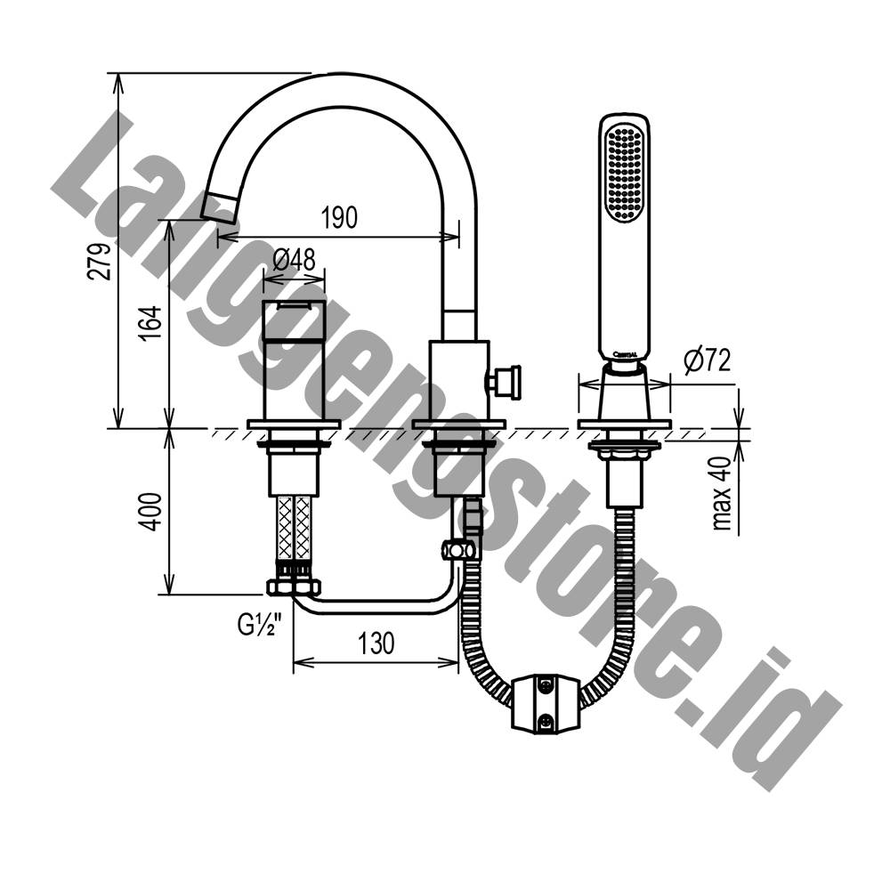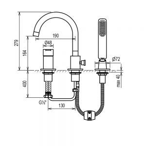 VISION A C33401 3-Hole Bath Shower Mixer by Rino Crestial #SKU. C33401 Product description : VISION A C33401 3-Hole Bath Shower Mixer 3-hole deck single lever bath shower mixer ½” Ø40mm ceramic cartridge swivel spout automatic diverter handshower (C28103) pull-out shower hose chrome finish Dimensional Drawing Product Range