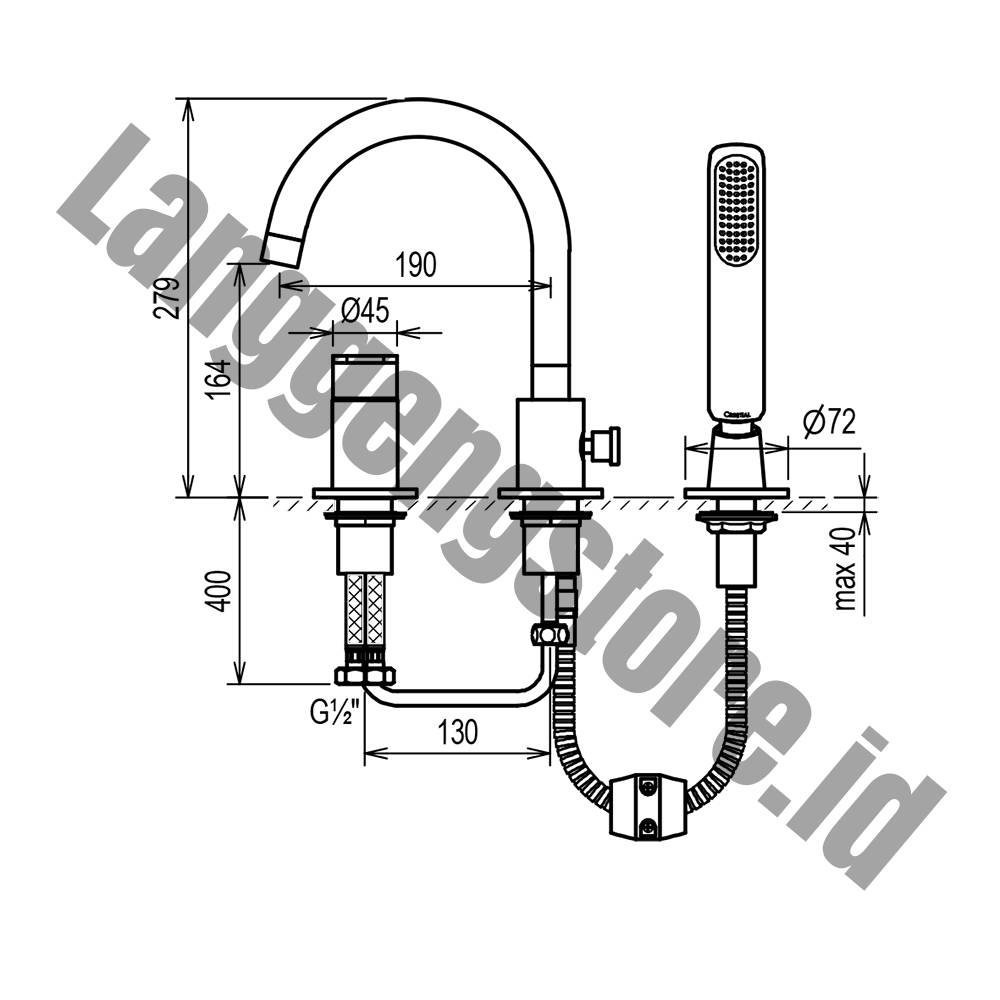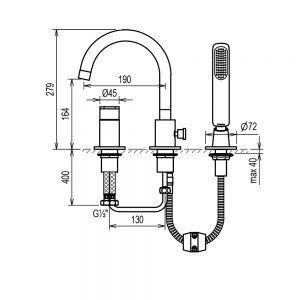 VISION T C33411 3-Hole Bath Shower Mixer by Rino Crestial #SKU. C33411 Product description : VISION T C33411 3-Hole Bath Shower Mixer 3-hole deck mounted bath shower mix ½” Ø40mm ceramic cartridge swivel spout automatic diverter handshower (C28103) pull-out shower hose chrome finish Dimensional Drawing Product Range