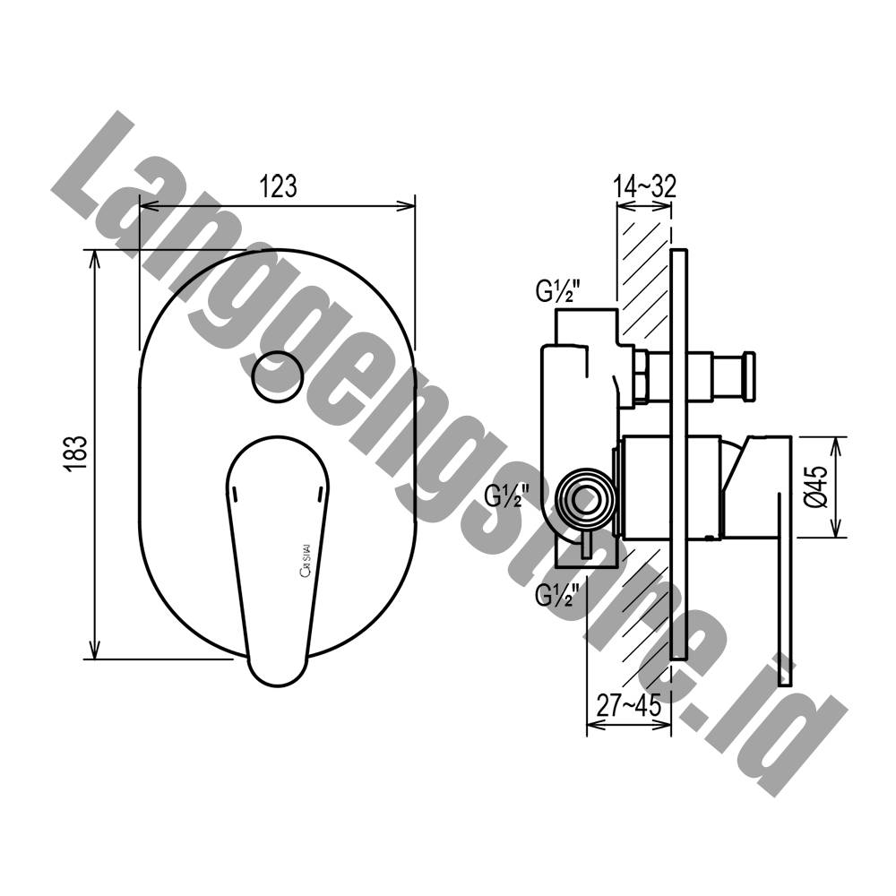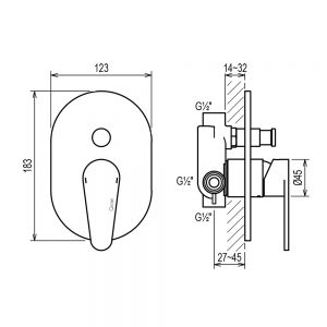 VISION T C33952 Concealed Bath Shower Mixer by Rino Crestial #SKU. C33952 Product description : VISION T C33952 Concealed Bath Shower Mixer Single lever concealed bath shower mixer ½” Ø40mm ceramic cartridge automatic diverter top and bottom outlets ½” with 123x183mm cover plate chrome finish Dimensional Drawing Product Range