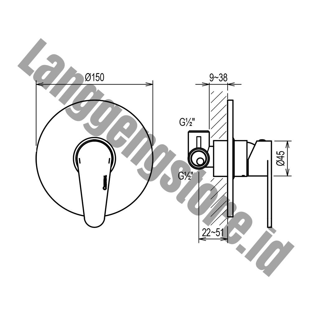 VISION T C33953 Concealed Shower Mixer by Rino Crestial #SKU. C33953 Product description : VISION T C33953 Concealed Shower Mixer Single lever concealed mixer ½” Ø40mm ceramic cartridge top outlet ½” with Ø150mm cover plate chrome finish Dimensional Drawing Product Range